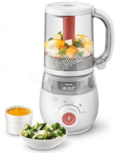Avent 4 in 1-ben pároló és turmixgép. Az egyedülálló technológiánknak köszönhetően a gőz alulról felfelé kering, ezáltal minden egyes összetevő egyenletesen, forralás nélkül át tud főni. A tápanyagokat, az állagot és a főzés során keletkezett folyadékot megőrzi a turmixoláshoz a készülék. Miután megpárolta a szükséges összetevőket, nem kell mást tennie, cs