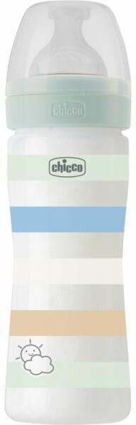 A Chicco Well-being csecsemőüvegek a megfelelő üveget kínálják mindennapi szükségletre a babának, hogy segítsék az anyukát és a babát élvezni a nyugodt etetési élményt. Segítenek csökkenteni a kólikát, a refluxot, és ezáltal a baba ingerlékenységét. A Physio szilikon cumi Soft Sense felületkezeléssel extra puha és kellemes, ami természetes érzést kelt a babában.
