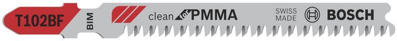 Fűrészlap oszcilláló fűrészhez T 102 BF; T 102 BF ; BIM, osztott fogak köszörült oldalakkal; Tiszta vágások a PMMA lapokon.