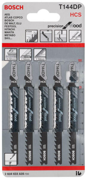 PRO Wood precise T144DP szúrófűrészlap Vastag fűrészlaptest a nagyobb szögpontosság érdekében Puhafa precíziós vágása A vastagabb fűrészlap javítja a stabilitást, ami biztosítja a pontos vágást Minden T befogószárú szúrófűrészhez használható Lehet, hogy régi dizájnnal jön Anyagok Puhafa precíziós vágása 1 A vastagabb fűrészlap javítja a stabilitást, ami biz