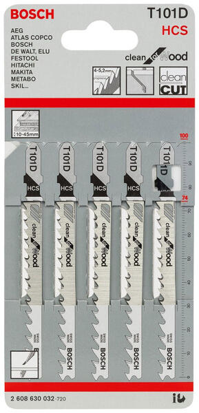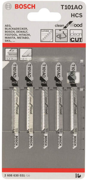 A T 101 AO Clean for Wood szúrófűrészlap fa tiszta, ívelt vágására alkalmas Precíziósan köszörült fogazata és kúposra csiszolt lapja tiszta vágásra alkalmas A magas széntartalmú acélból készült fűrészlap puhafa és nem abrazív faipari anyagok vágásához használható Minden T befogószárú szúrófűrészhez használható. Anyagok Puhafa Rétegelt lemez SZÚRÓFŰRÉSZ