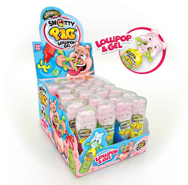 Johny Bee snotty pig malacos édesség 24x40g Hivatalos magyarországi forgalmazótól. Leírás: Kiszerelés: 24x40g Tápértékre vonatkozó adatok: Átlagos tápérték 100g termékben: Energia: 1688kJ/397kcal Szénhidrát: 99,3g ebből cukor: 90,8g Fehérje: 0g Zsír: 0g Só: 0g