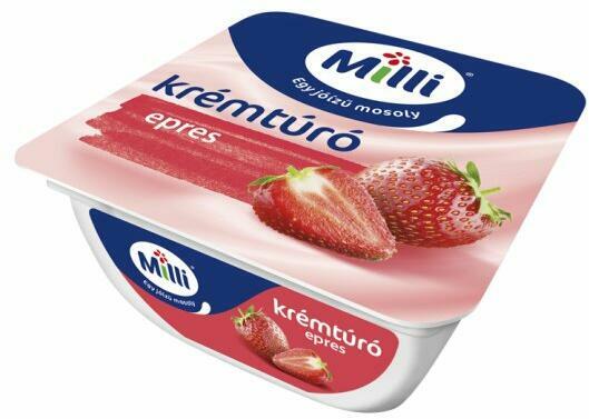 Epres krémtúró. Utóhőkezelt, desszert jellegű túrókészítmény, epres.