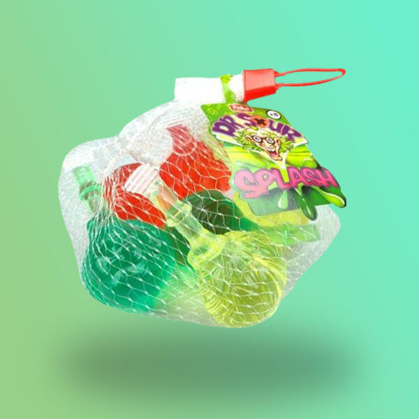 Dr. Sour Splash Candy folyékony édesség Töltőtömeg: 180g Összetevők: víz, savanyúságot szabályozó anyag (E330, E331), édesítőszerek (E950, E951), tartósítószer (E202), aroma, színezékek (E104, E129, E133). Átlagos tápérték 100g-ban Energia 308kcal Zsír 21g melyből telített zsírsavak 0g Szénhidrát 17g melyből cukrok 5g Fehérje 14,3g Só 1,2g Angol neve: Dr Sour Spla