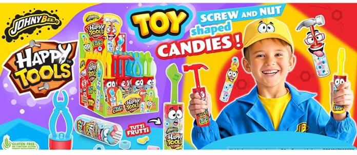Johny Bee happy tools cukorka 24x10g Hivatalos magyarországi forgalmazótól. Leírás: Barkács/szerszám játék csavar formájú cukorkával Ízesítés: Tutti-Frutti Kiszerelés: 24 x 10 g