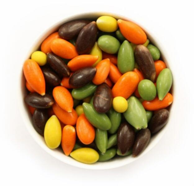 Részletes leírás: A napraforgómagjainkat gondosan válogatjuk és enyhén megpörköljük, hogy megőrizzék természetes ízüket és ropogósságukat. Ezt követően minőségi csokoládéba mártjuk őket, majd vékony, színes cukorbevonattal borítjuk be, amely vonzó megjelenést és édes ízt kölcsönöz nekik. A napraforgómag gazdag vitaminokban, ásványi anyagokban és egészsége