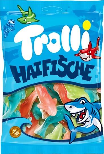 Troll cápák 200g Lágy gyümölcszselé cápa formájú. Hozzávalók: Glükózszirup, cukor, zselatin. Savanyúságot szabályozó anyag (citromsav, tejsav). Hidratálók (szorbit), színezékek (édesburgonya, retek, alma, pórsáfrány, spirulina). Ízek, fényesítő szerek (fehér és sárga viasz). Allergének: nincs megadva. Tápértékek 100 grammonként: Energia 337 kcal/ 1431 kJ Zsíro