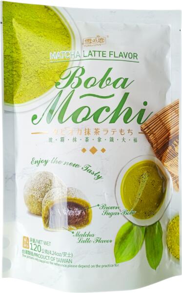BOBA MOCHI MATCHA LATTENettó tömeg: 120 gÖsszetevők: maltóz (tápióka), módosított tápióka keményítő, cukor, víz, tartósítószer E202, burgonya por, 0,05%25 matcha por, emulgeálószer E471, zöld tea aroma, sűrítőanyag E415, színezék E150a. A termék nyomokban tartalmazhat dióféléket, szezámmagot, földimogyorót, gabonát (glutén) és szójababot. Figyelem: A csomagolá