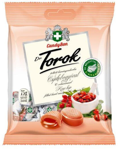 Dr. Torok keménycukor töltött csipkebogyó ízben. 75 g-os töltött keménycukorka; Dr. Torok termék az egészséges élelmiszerek kedvelőinek.