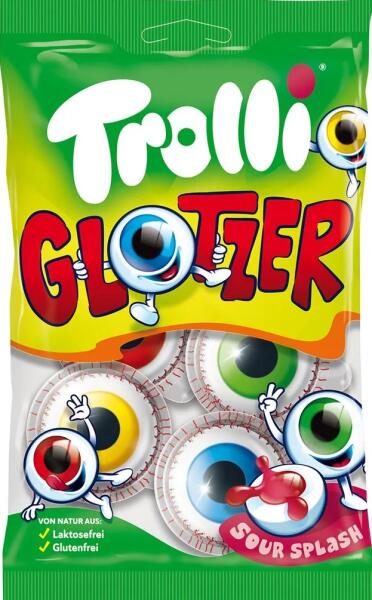 Trolli Glotzer 75g Kísérteties habszem. Vörös tölteléke finom ízű, és savanyúan bizsergeti a nyelvet. Hozzávalók: Glükóz szirup; cukor; dextróz; zselatin. Savanyítószer: citromsav; aromák. Gélképző anyag: agar-agar gumi. Színezékek: kármin, kurkumin, ragyogó kék FCF. Növényi korom; Pálmaolaj. Lengyel: karnaubaviasz. Allergének: nincs megadva. Tápértékek 100 grammon