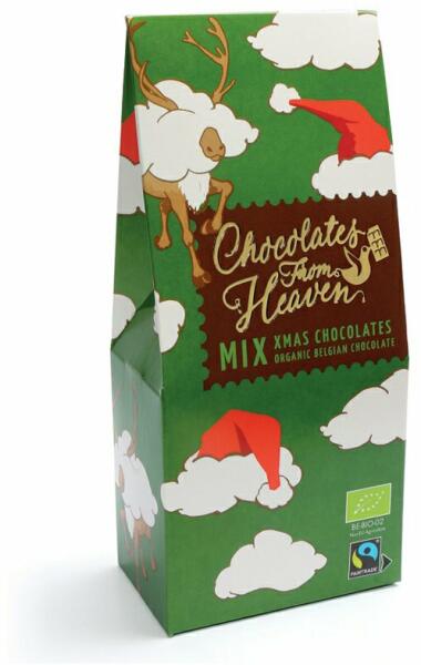 Luxus belga tej- és étcsokoládé praliné karácsonyi ajándékcsomagolásban. A Klingele család csokoládégyárában, Gentben, Belgiumban készült. BIO és Fairtrade.