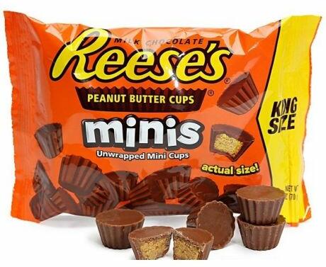 Reese's Minis King Size 70g kicsomagolva A legjobb mogyoróvajjal töltött csokoládé cupcakes - ezúttal mini méretben, praktikus csomagolásban. Egy zacskó 70 g mini Reese cupcake-t tartalmaz, ez elég nagy adag A legjobb mogyoróvajjal töltött tejcsokoládé cupcake évek óta az egyik legkelendőbb amerikai édesség. A puha mogyoróvaj és a finom csokoládé kombinációja nem csak az