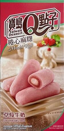 Qmochi Roll japán sütemény epres-tej ízzel 150g Rizs mochi tekercs epres tej ízzel Hozzávalók: Malátacukor, nyálkás rizs, sűrítőanyag (E1442). Pálmaolaj, eperlé, trehalóz. Zselatin (marhahús), aromák, édesítőszer (E420). Színezékek (allura vörös), tartósítószerek (E200). Nyomokban glutént , földimogyorót , szójababot , tejet , mangót , dióféléket , szezámmagot