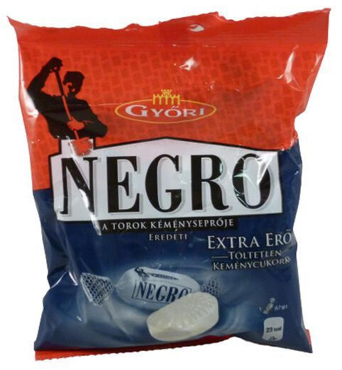 Negro extra erős borsmenta-mentol ízű töltetlen keménycukorka. 79 g-os cukorka; Negro termék az egészséges élelmiszerek kedvelőinek.