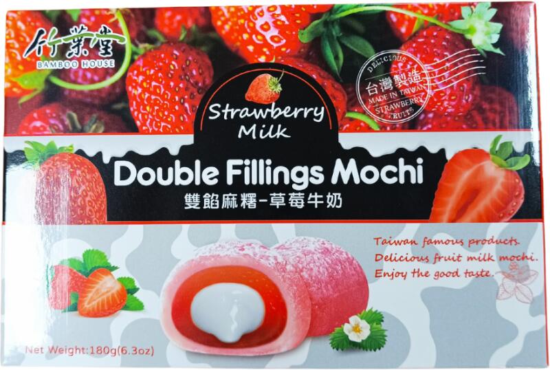 DOUBLE FILLINGS EPER MOCHIKiszerelés: 180 gÖsszetevők:Az Eper Mochi termék tartalmaz tojást és tejet!Figyelem: A csomagolás tartalmaz egy oxigén elvonó tasakot, hogy a doboz tartalmának eredeti minősége megmaradhasson, és elszívja a nedvességet. NE EGYE MEG EZT A TASAKOT! Átlagos tápérték 30 g termékben:Energia: 99 kcalZsír: 0,6 g-amelyből telített zsírsavak: 0,4 gSzénhidr