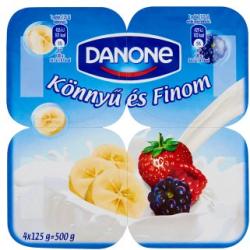 A Danone Könnyű és Finom joghurt élõflórát tartalmaz, amely támogatja a bélflóra egyensúlyát. Friss tejbõl készült, gyümölcs hozzáadásával. Átlagos tápérték 100 g termékben:Energia: 335 kJ (79 Kcal)Zsír: 1,8 g ebbõl telített: 1,2 gSzénhidrát: 13,3 g ebbõl cukrok: 12,6 gFehérje: 2,5 gSó: 0,11 gTárolási információ: hűtve, 2-10°C között tárolandó!Származás
