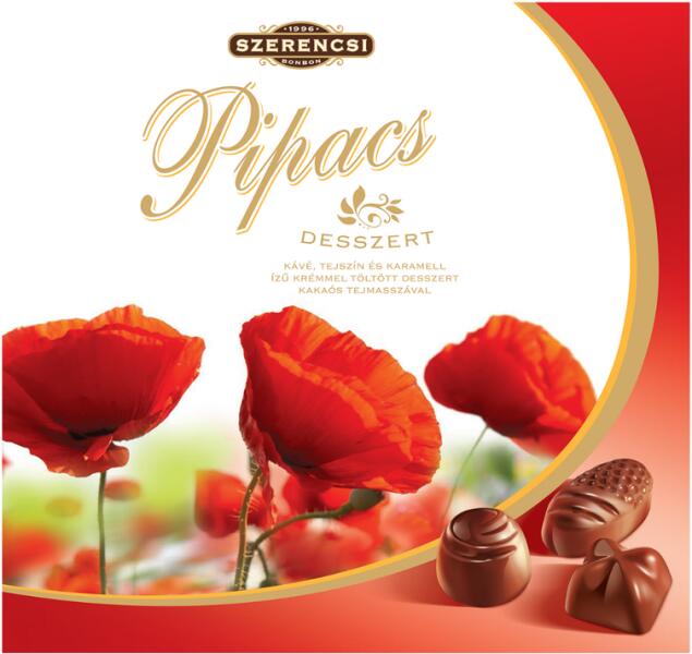 Szerencsi Pipacs csokoládé desszert 127g Hivatalos magyarországi forgalmazótól. Leírás: Kávé, tejszín és karamell ízű krémmel töltött desszert. Összetevők: Kakaós tejmassza (50%): cukor, növényi zsír (teljes mértékben hidrogénezett pálmamag zsír), sovány tejpor, zsírszegény kakaópor 5%, emulgeálószer: lecitinek (szója), aromák Kávé ízű krém (18%): cukor, zs