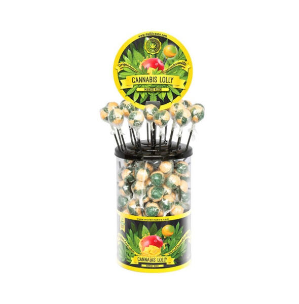 Kender és mangó ízesítésű kannabisz nyalóka 100 db - THC-mentes Mango Kush Kannabisz Nyalóka THC-mentes 100%-ig legális Kender és mangó ízesítés 17 g / nyalóka Összetevők: Glükóz szirup, cukor, savanyító szer (citromsav (E330)), ízesítés (kenderolaj), színezékek (E101, E132, E160c). Tápérték táblázat Tartal om 100 g termékben Egy adagban (17 g) Energia 1666 kJ / 392