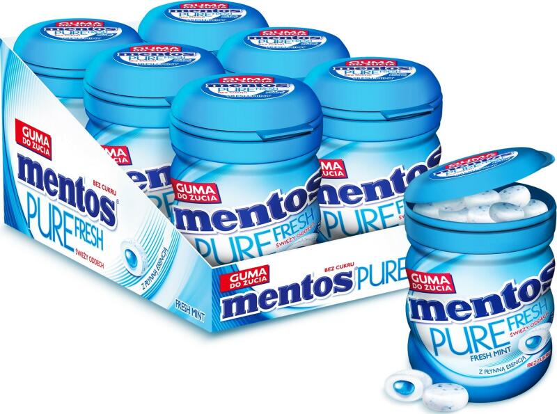 Mentos Pure Fresh Freshmint 6x60g A Mentos rágógumi kíméletes a fogakhoz, és minden cukros rágógumi alternatívája. Rágva friss menta és zöld tea kivonatot fejleszt. Hozzávalók: Édesítőszerek: (xilit, szorbit, mannit, maltit szirup, maltit, aszpartám, aceszulfám K, szukralóz). Rágómassza, stabilizátor (glicerin). Ízek, keményítő, maltodextrin. Emulgeálószerek (zsírsava