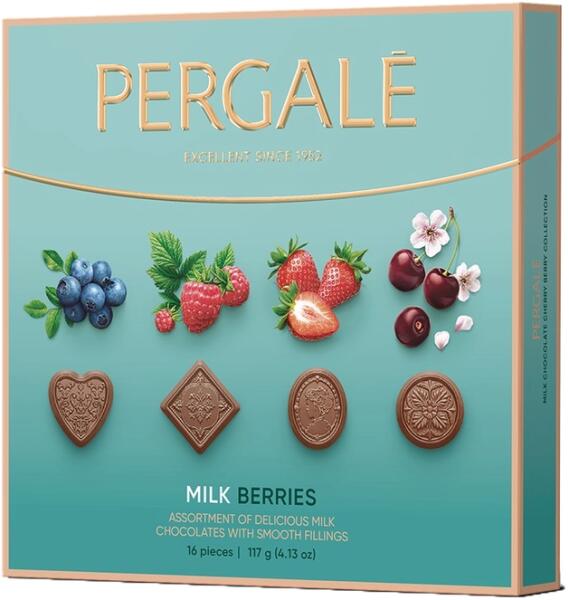 Pergalé cherry berry csokoládé desszert 117g Hivatalos magyarországi forgalmazótól. Leírás: Tejcsokoládéból készült vegyes gyümölcsös töltelékes desszert. Összetevők: Tejcsokoládé 56% [cukor, teljes tejpor, kakaóvaj, kakaómassza, növényi zsírok változó arányokban (pálmaolaj, sheavaj) sovány tejpor, emulgeálószer: szójalecitin, poliglicerin-poliricinoleát, aroma]