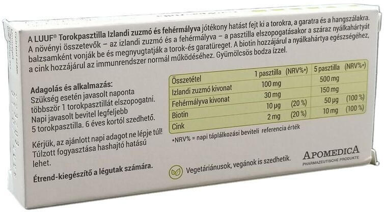 Torokpasztilla izlandi zuzmó és mályva kivonattal.