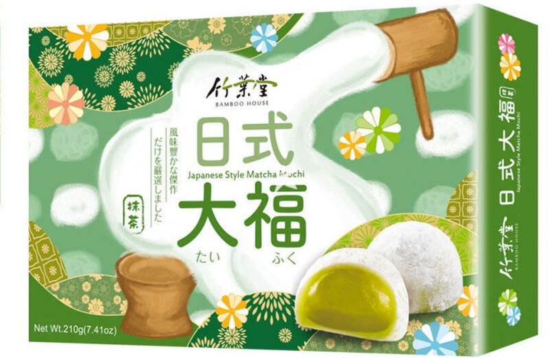 Japán süti Mochi Bamboo House Matcha 210g Hagyományos japán különlegesség Hozzávalók: Maláta, zöld tea paszta 35% (maltóz, bab, zöld tea, cukor, pálmaolaj). Ragadós rizspor, köles, cukor, pálmaolaj. Sűrítőanyag (hidroxipropil-dikeményítő-foszfát E1442). Hidratáló (szorbit E420), aroma. Tartósítószer (szorbinsav E200). Színezékek (brilliánskék FCF E133, tartrazin E1
