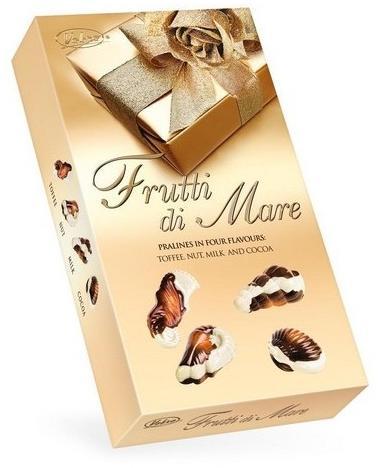 Vobro Frutti Di Mare 90g Hivatalos magyarországi forgalmazótól. Összetevők: cukor, növényi pálmazsír, sovány tejpor 10%, kakaóvaj, teljes tejpor 4,5%, kakaótömeg, (tej) tejsavó por, búza liszt, glükóz, mogyoró 1,4%, zsírtartalmú kakaópor 0,9%, kakaó 0,6%, emulgeálószerek: szójalecitin és E 476, részben hidrogénezett növényi pálmazsír, tejzsír, aromaanyagok, glükó