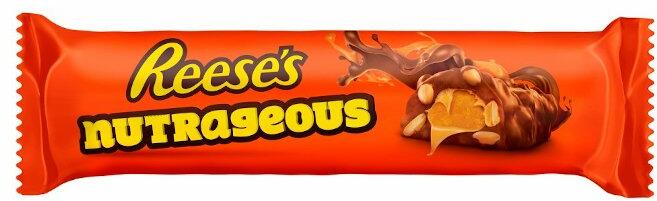 Reese's Nutritious Bar 47g Reese bárja tele mogyoróvajjal és mogyoródarabokkal. Hozzávalók: Cukormáz tejcsokoládé ízzel (40%). Cukor, kakaóvaj, kakaómassza. Növényi olaj (pálma, shea, napraforgó, pálmamag). Sovány tejpor , laktóz , tejzsír , savópor . Emulgeálószer: szójalecitin E222, poliglicerin-poliricinoleát (E476)). Mesterséges aromák (vanillin), földimogyoró (26%