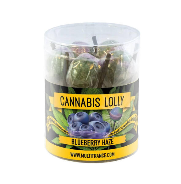 Kender és áfonya ízesítésű kannabisz nyalóka 10 db - THC-mentes Blueberry Haze Kannabisz Nyalóka THC-mentes 100%-ig legális Kender és áfonya ízesítés 17 g / nyalóka Összetevők: Glükóz szirup, cukor, savanyító szer (citromsav (E330)), ízesítés (kenderolaj), színezékek (E101, E120, E132). Tápérték táblázat Tartal om 100 g termékben Egy adagban (17 g) Energia 1666 kJ /