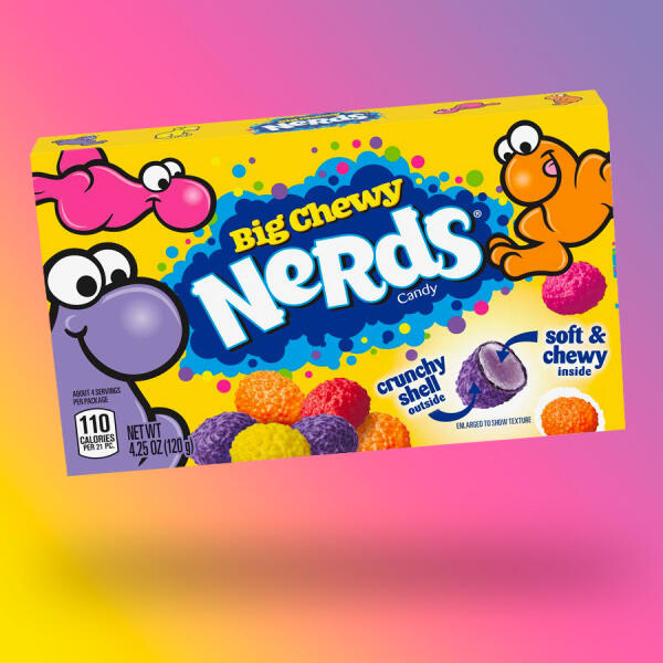 Nerds nagy rágós cukorka töltőtömeg: 120g Összetevők: dextróz, kukoricaszirup, cukor, víz, kukoricakeményítő, módosított kukoricakeményítő, max 2%-ban: savasság-szabályozó E296, természetes aromák, tápióka-dextrin, fényezőanyag E903, színek E132-E129*-E102*-E110*. *Káros hatással lehet a gyermekek aktivitására és figyelmére. GMO -t tartalmaz. Átlagos tápérték 1