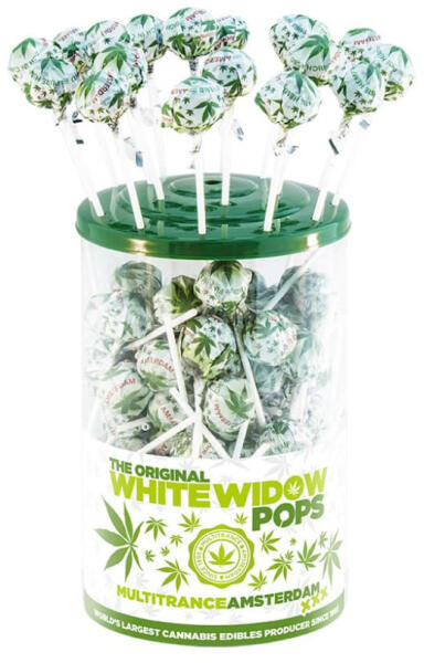 Kender ízesítésű kannabisz nyalóka 100 db - THC-mentes White Widow Pops Kannabisz Nyalóka THC-mentes 100%-ig legális Kender ízesítés 18 g / nyalóka Összetevők: : Glükóz szirup, cukor, savanyító szer (citromsav), kender ízesítés, színezékek (E100, E102, E131, E132). Tápérték táblázat Tartal om 100 g termékben Egy adagban (18 g) Energia 1670 kJ / 393 kcal 300 kJ / 71 kcal