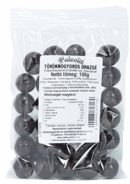 Eritrittel édesített csokoládéval bevont törökmogyoró szemek. Összetevők: Törökmogyoró (30%), Édesítőszer: Eritrit, Kakaópor, Kakaóvaj, Kókuszliszt, Pálmazsír, Édesítőszer: Szteviol glikozidok Kakaó szárazanyag a bevonatban minimum 60%. Kiszerelés : 100g Mi is az Eritrit? Az eritrit egy zöldségekben, gyümölcsökben is előforduló édes ízű természetes anyag , mely