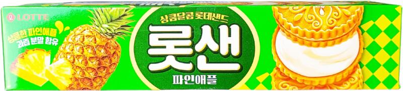 ANANÁSZ KEKSZ LOTTENettó tömeg: 105 gÖsszetevők:Energia: 2192 kJ/ 524 kcalZsír: 26,6 g-amelyből telített zsírsavak: 13 gSzénhidrát: 66,7 g-amelyből cukrok: 34 gFehérje: 4 gSó: 0,3 gSzármazási hely: Dél-Korea