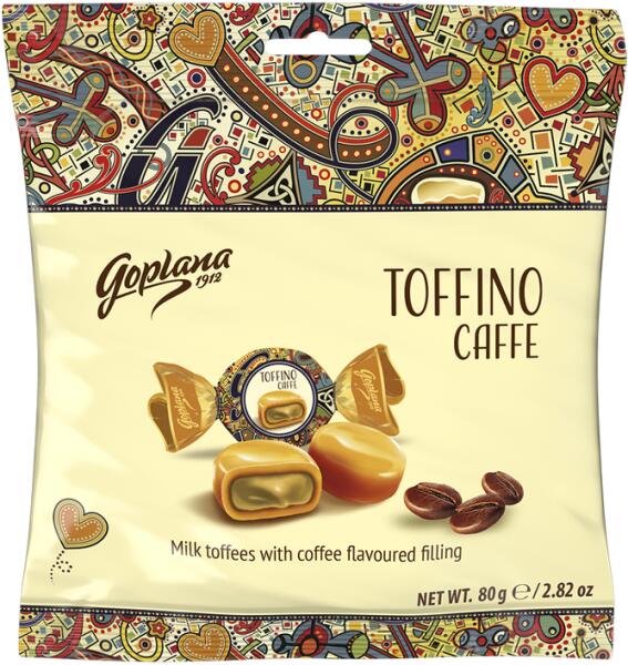 Goplana Toffino Café karamell, kávés töltelékkel 80 g Hivatalos magyarországi forgalmazótól. Leírás: Kávé ízű töltelékkel töltött karamell. Kiszerelés: 80g