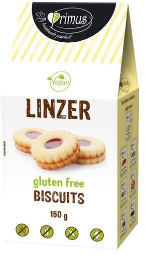 A termék a speciális étkezési célcsoport számára megfelelő alternativa, vegánsága mellett, gluténmentes, cukormentes, tejmentes, tojásmentes, szénhidrátcsökkentett, ir kompatibilis. 150 g-os gluténmentes vegán linzer; Primus termék az egészséges élelmiszerek kedvelőinek.