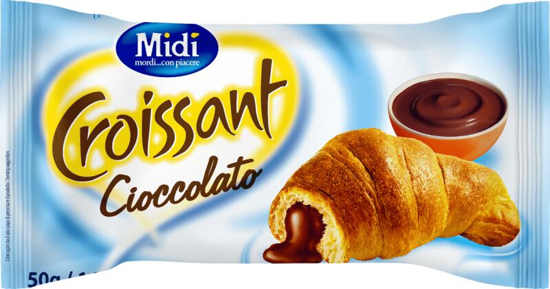 Midi Croissant Csoki 50g Hivatalos magyarországi forgalmazótól. Leírás: Midi Croissant Csoki 50g Összetevők: BÚZA liszt, növényi zsírok és olajok (pálma, napraforgó), természetes élesztő (búza), cukor, tojás, glükóz-fruktóz szirup, emulgeálószer: mono- és diglicerid zsírok (pálma), sovány TEJ por, csokoládé (1,6%) , szőlőcukor, vaj (TEJ), só, aromák, gélképző s