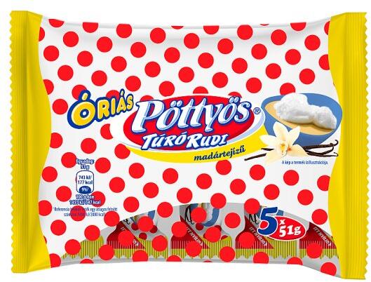 Félzsíros túródesszert kakaós étbevonattal, narancsos marcipán töltelékkel. A tejtermékek klasszikusai, nagy öregjei a Pöttyös túró rudik. Talán nincs is olyan ember Magyarországon, aki ne ismerné, ne kóstolta volna ezt a túrós-csokis hengert. Átlagos tápérték 100 g termékben:Energia: 1561 kJ (373 Kcal)Zsír: 18,2 g ebbõl telített: 13,8 gSzénhidrát: 42,7 g ebbõl cukr
