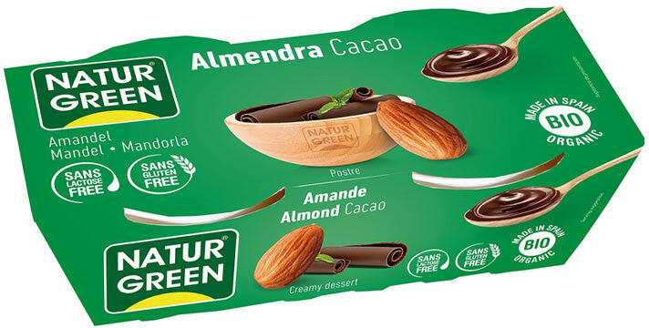 Mandula desszert jellegzetes csokoládé ízesítéssel. Összetevők: víz, nádcukor*, mandula*, (8%), részben zsírtalanított kakaó* (1,9%), kukoricakeményítő*, tápióka keményítő*, kakaó paszta (0,9%), sűrűsítőanyag: szentjánoskenyérmag*, természetes mandulaaroma*. *Ellenőrzött ökológiai gazdálkodásból. Átlagos tápérték 100g termékben: Energia: 533 kJ/127kcal Zsí