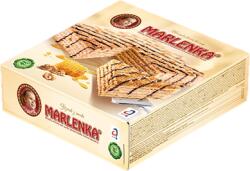 Régi hagyományos családi recept alapján készítik a legmagasabb minőségű alapanyagokból, tartósítószerek vagy mesterséges színek használata nélkül. 800 g-os mézes diós torta; Marlenka termék a GMO mentes édességek kedvelőinek.