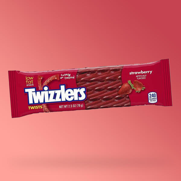 Twizzlers Strawberry epres gumicukor Nettó tömeg: 70g Összetevők: glükózszirup, gazdagított búzaliszt (liszt, niacin, vas-szulfát, tiamin-mononitrát, riboflavin, folsav), cukor, kukoricakeményítő, pálmaolaj, só, mesterséges aroma, citromsav, mesterséges színezék (E129), ásványi olaj, lecitin (szója). Átlagos tápérték 100g-ban Energia 357kcal Zsír 0g melyekből telített