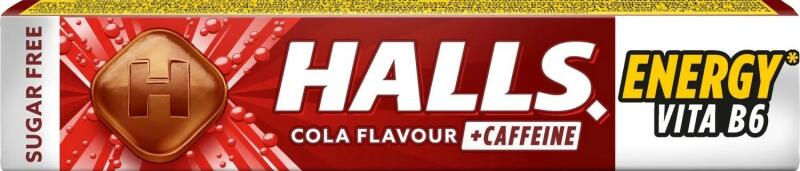 Halls Energy Vita B6 Cola 32g Frissítő cukormentes cukorkák kóla ízzel, koffeinnel és B6-vitaminnal Hozzávalók: Édesítőszerek (izomalt, szukralóz). Savképző (citromsav), karamell. Koffein (0,1%), B6-vitamin. Allergének: nincs megadva. Tápértékek 100 grammonként: Energia 991 kJ / 238 kcal Vastag