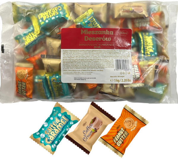 Vobro Mix cukorka 1kg Csomag tartalma: Három íz egyedülálló keveréke: Panna cotta. Kávé és tejszín. Mogyoróvaj. A cukorkákat finom étcsokoládé bevonat veszi körül, amely a szájban olvad.
