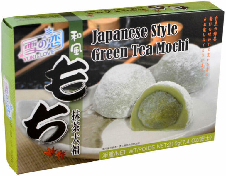 Zöld Teás Mochi, 210gr (Yuki&Love)A Zöld Teás Mochi egy ínycsiklandó, hagyományos japán desszert, amelyet finom zöld teaporral ízesítenek. A mochi ragadós rizslisztből készül, ezért rágós állagú. Ezt a változatot zöld tea ízzel töltik meg. A Zöld Teás Mochi alapja egy gyöngyházfényű, puha rizstészta, amely kiváló minőségű zöld teaporral van finoman átitatv