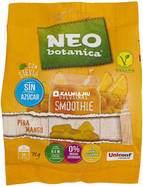Neo Botanica Stevia ananász-mangó ízű zselécukor Neo botanica ananász-mangó ízű, cukormentes gumicukorka édesítőszerekkel. VEGÁN, glutén-, cukor-, telített zsírsavmentes, pálmaolajmentes, mesterséges színezékektől és tartósítószerektől mentes. Cukormentesek, így cukorbetegek is fogyaszthatják Gluténmentes összetevőket tartalmaznak Vegán termékek Természetes kivona
