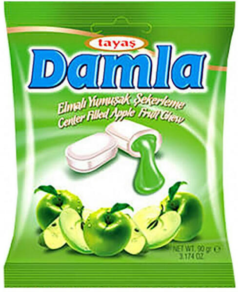 Damla zöldalma ízű cukorka 90g Hivatalos magyarországi forgalmazótól. Összetevők: Cukor, Glükózszirup, Almás Töltelék 10% (Cukor, Glükózszirup, Almalé Sűrítmény (20%), Savanyúságot Szabályozó Anyag (Citromsav), Zselésítőanyag (Pekintek), Alma Aroma), Dextróz, Teljes Mértékben Hidrogénezett Pálmaolaj, Étkezési Zselatin, Savanyúságot Szabályozó Anyag (Citromsav),