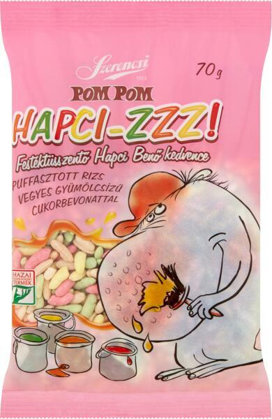 Gyártó: SZERENCSI Modell: Pom Pom Hapci-ZZZ puffasztott rizs drazsé 70g Leírás: Jellemzők Festéktüsszentő Hapci Benő kedvence Puffasztott rizs vegyes gyümölcsízű cukorbevonattal Összetevők Cukor, Puffasztott rizs 25%, Glükózszirup, Színezékek: karotinok, kurkumin, kárminok, klorofillok és klorofillinek rézkomplexei, Szulfitos karamell, Savanyúságot szabályozó anyag: ci