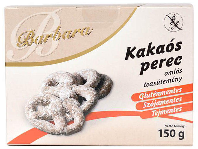 Barbara gluténmentes kakaós perec: ropogós és ínycsiklandó finomság természetes alapanyagokból, gluténérzékenyek számára is tökéletes választás.