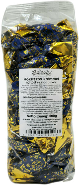 Közeli lejáratú termék! 2025.02. 28 Paleolit kókuszos krémmel töltött étcsokoládé szaloncukor, édesítőszerrel. PALEOLIT KÓKUSZOS SZALONCUKOR 500G KRÉMMEL TÖLTVE Paleolit kókuszos krémmel töltött étcsokoládé szaloncukor, édesítőszerrel. Összetevők: étcsokoládé 50% (kakaómassza, édesítőszer: eritrit(14%), kakaóvaj, emulgeálószer: napraforgó lecitin, édesítő