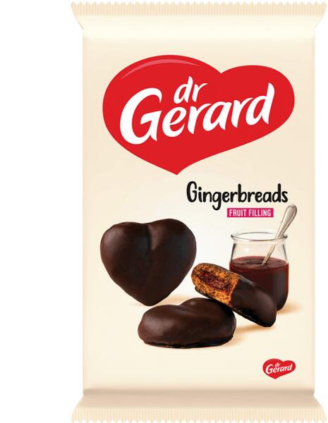 Dr. Gerard gyümölcsös mézespuszedli 175g Hivatalos magyarországi forgalmazótól. Összetevők: puszedlitészta 48% [búzaliszt, invertcukor szirup, térfogatnövelő szerek: E503, E500, mézeskalács fűszerkeverék 1,3%, színezék: E150c, savanyúságot szabályozó anyag: E270], kakaós öntet 28% [cukor, növényi zsír (pálma), csökkentett zsírtartalmú kakaó 15,5%, stabilizálósze