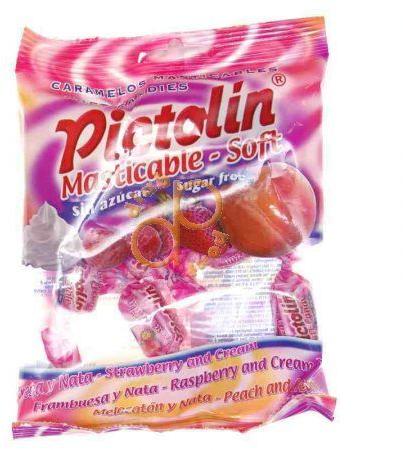 Hozzáadott cukormentesen, cukor helyett édesítő sziruppal készült az Intervan Pictolin Gyümölcsös puha karamellája, cukorbetegek is fogyaszthatják. Összetevők: édesítőszerek: maltit és mannit szirup, teljesen hidrogénezett kókuszzsír, étkezési sav: E-330, eper, málna, őszibarack, tejszín és karamell aromák, zselatin, emulgeálószerek: E-322 és E471, só, édesítőszer